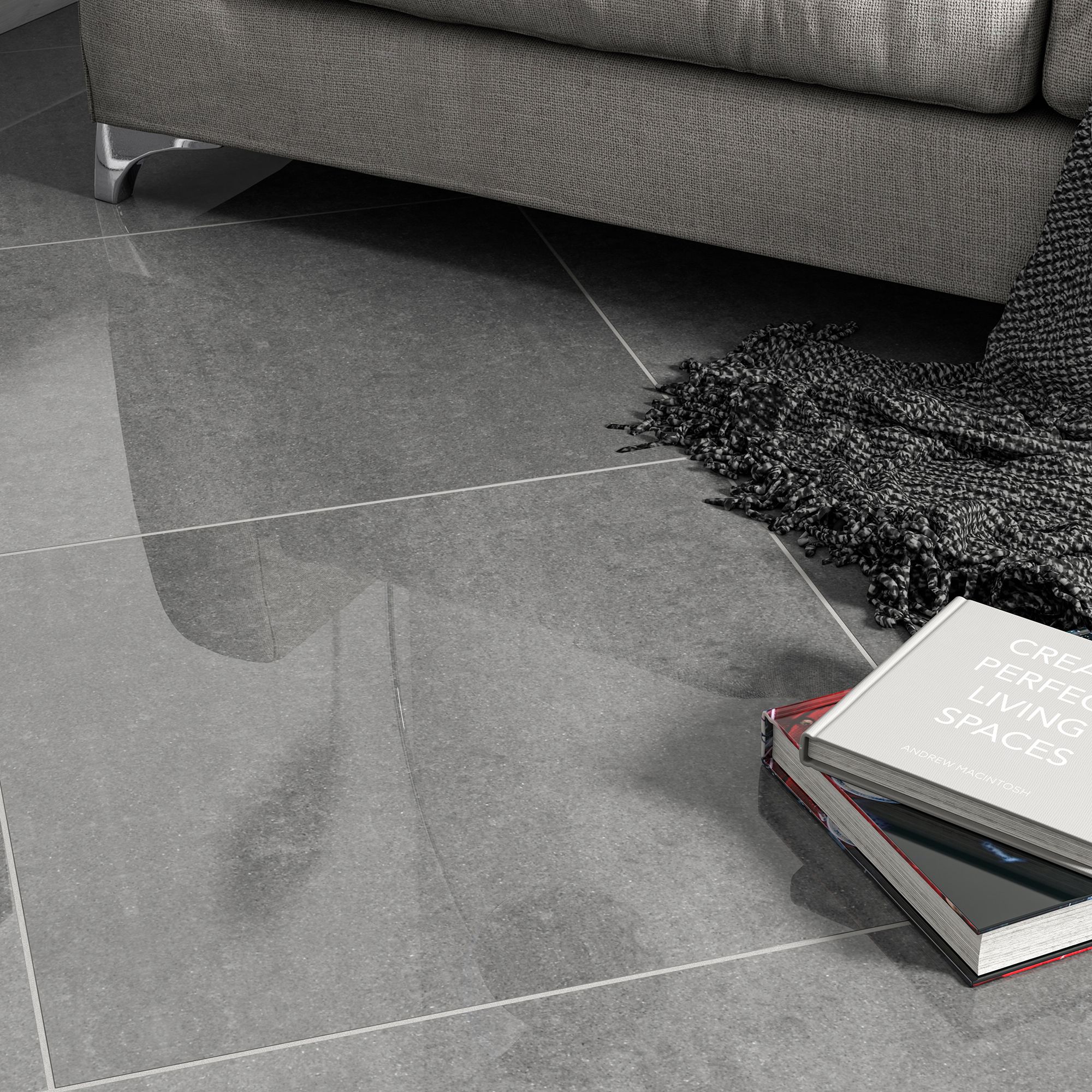 Imperiali Anthracite Gloss Stone Effect Porcelain Wall Floor Tile Pack Of 3 L 600mm W 600mm Diy At B Q